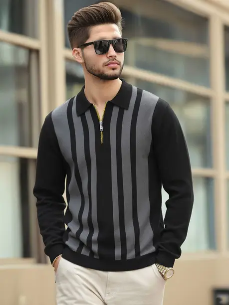 Men Regular Fit Striped Curved Collar Casual Shirt
