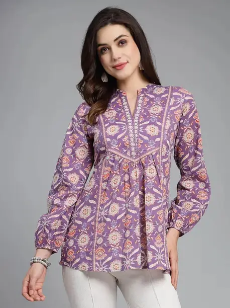 Casual Regular Sleeves Printed Women Purple Top